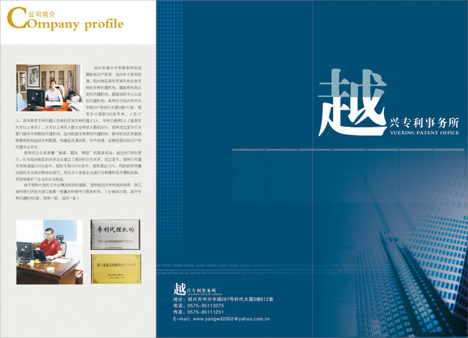 紹興市越興專利事務(wù)所是經(jīng)國家知識產(chǎn)權(quán)局、紹興市工商局批準(zhǔn),紹興地區(qū)具有開展專利業(yè)務(wù)資格的專利代理機(jī)構(gòu),國家商標(biāo)局認(rèn)定的代理機(jī)構(gòu),國家版權(quán)中心認(rèn)定的代理機(jī)構(gòu)。本所位于紹興市中興中路287號時代大廈6樓612室,現(xiàn)有辦公面積380多平米,人員17人,其中具有專利代理人資格的資深專利代理人5人,專利工程師5人(皆具有大專以上學(xué)歷),大專以上學(xué)歷人數(shù)占全所總?cè)藬?shù)的58%,行政人員3人,業(yè)務(wù)員4人。我所成立至今已與廈門新華專利商標(biāo)代理機(jī)構(gòu)、泉州文華專利商標(biāo)代理機(jī)構(gòu)、福州新華專利商標(biāo)代理機(jī)構(gòu)、溫州甌越專利商標(biāo)代理機(jī)構(gòu)、廣東冠華專利商標(biāo)代理機(jī)構(gòu)和廣州賦華專利商標(biāo)代理機(jī)構(gòu)及新華機(jī)構(gòu)北京聯(lián)絡(luò)部等組成專利聯(lián)盟,構(gòu)建起資源共享、協(xié)作共進(jìn)、連鎖經(jīng)營的知識產(chǎn)權(quán)代理專業(yè)平臺。
